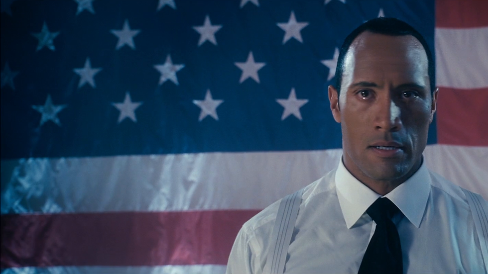 The movie stars Dwayne Johnson as an actor having a nervous breakdown after losing his memory, Seann William Scott playing two versions of the same cop, Sarah Michelle Gellar as a porn star with ties to a movement trying to steal an election, and Justin Timberlake as a drug dealing veteran who sits around spouting expository narration and lip syncing The Killers.